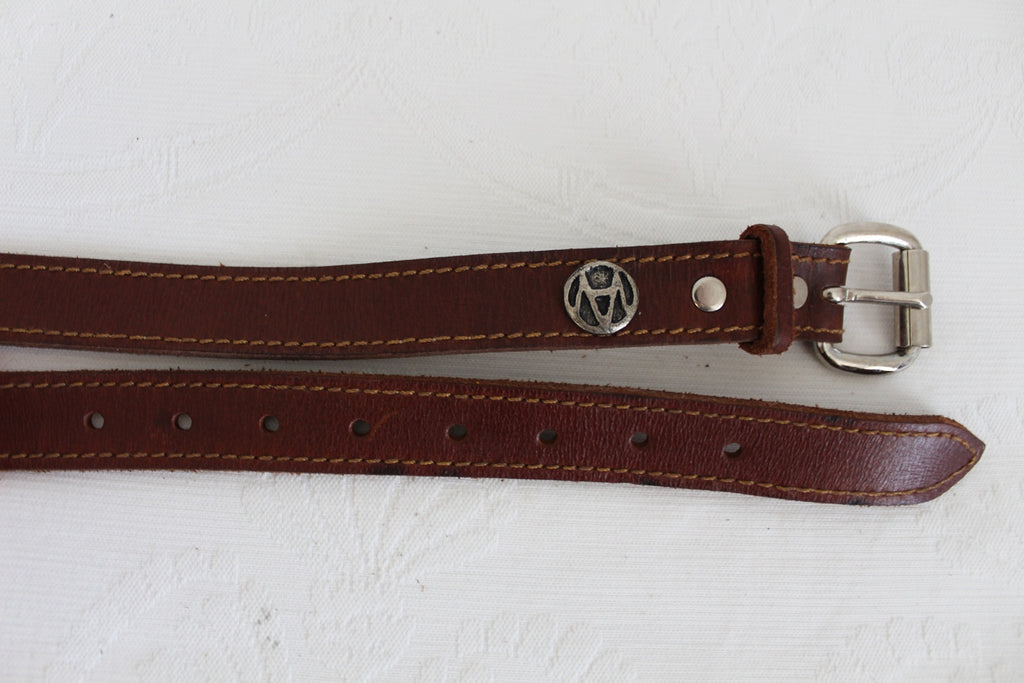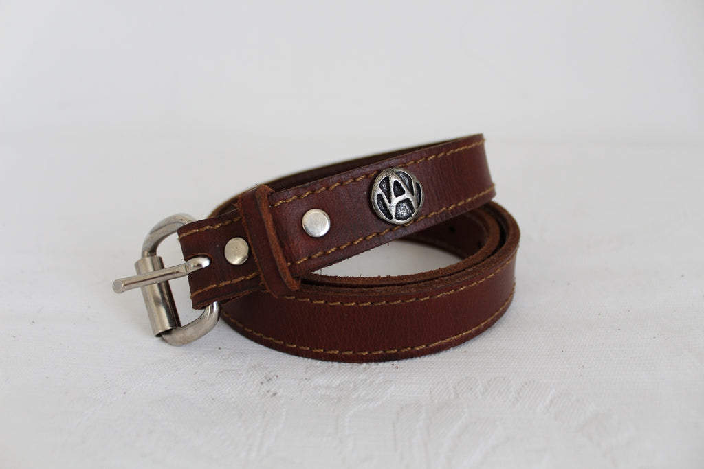 NEW GENUINE LEATHER STITCHED BELT COGNAC