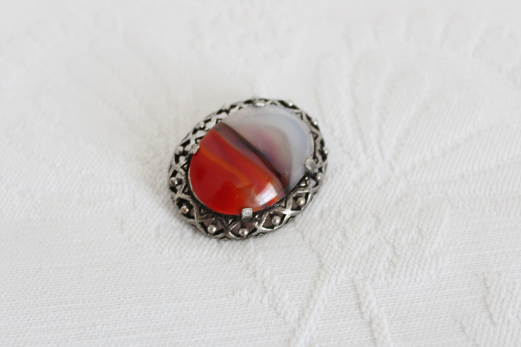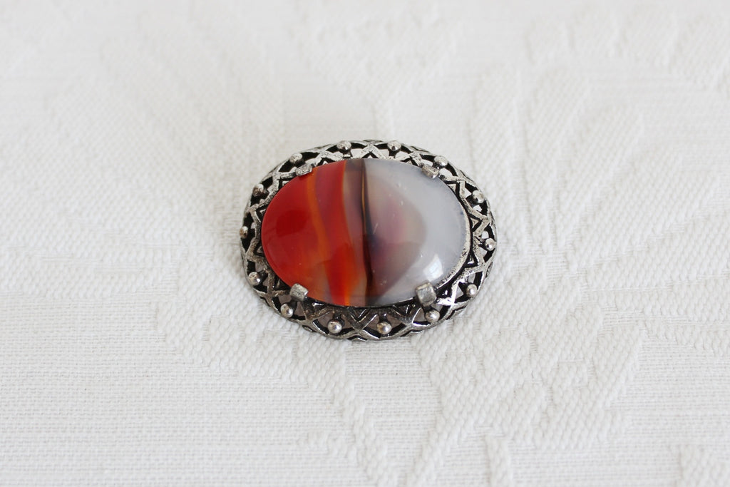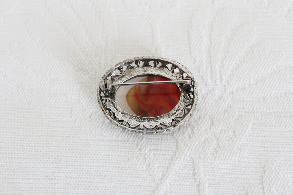 VINTAGE GEM STONE SILVER TONE BROOCH