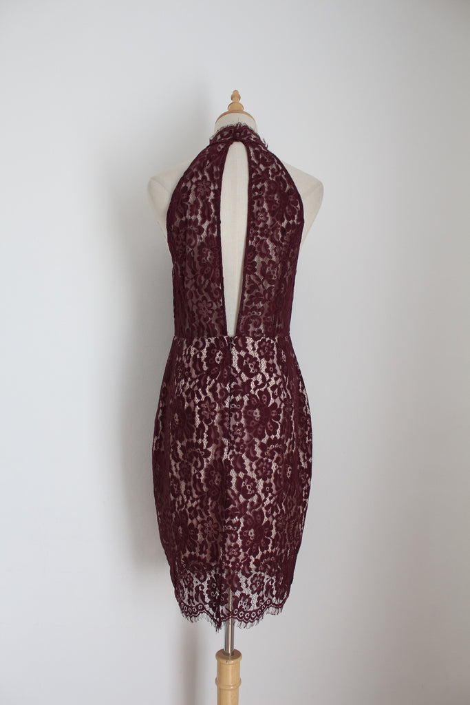 KEEPSAKE HIGH NECK LACE COCKTAIL DRESS RED - SIZE 10