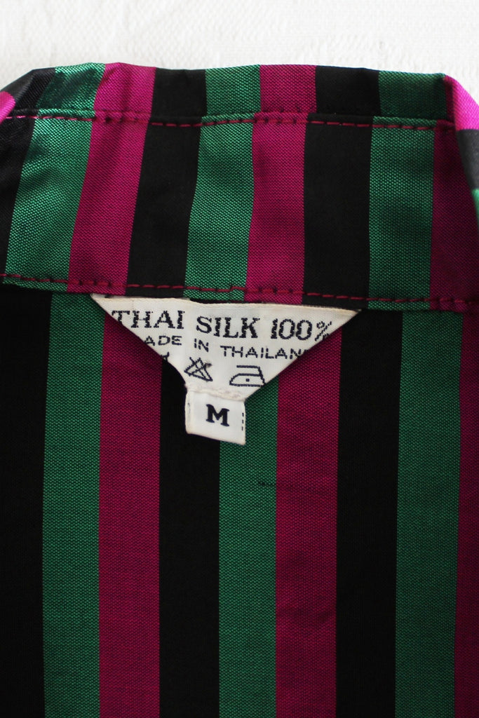 Authentic vintage pure silk striped shirt. Made in Thailand.