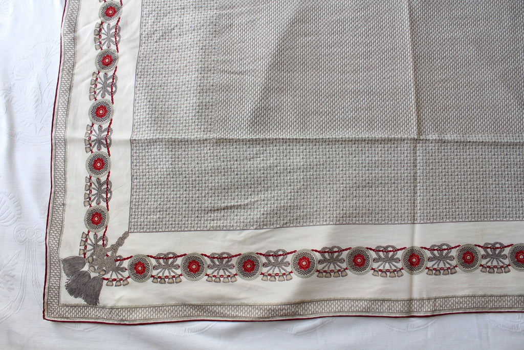 Authentic vintage Chanel luxury designer extra large silk scarf with tassel print. Made in Italy.