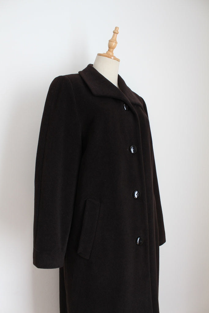 High quality authentic vintage dark brown lambswool angora 3/4 length coat. Fully lined.