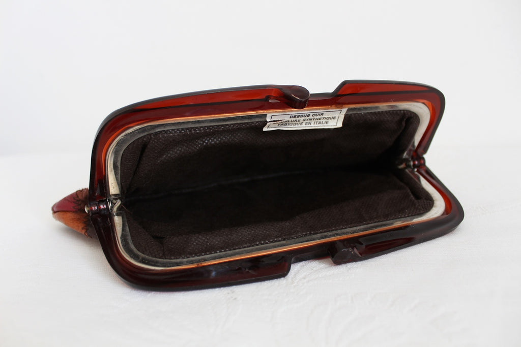 Beautiful authentic vintage patch genuine leather clutch with lucite frame. Made in Italy.