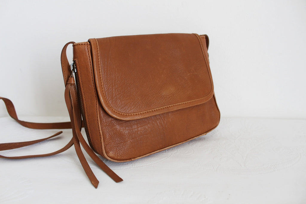 Old Khaki genuine leather small sling bag with side zips.