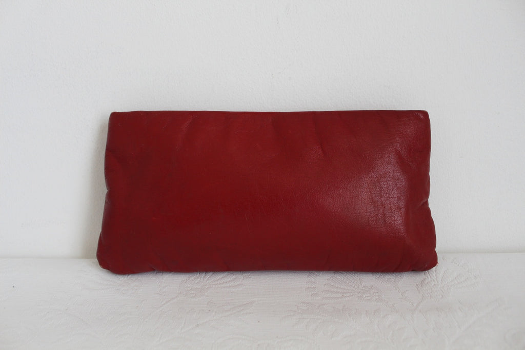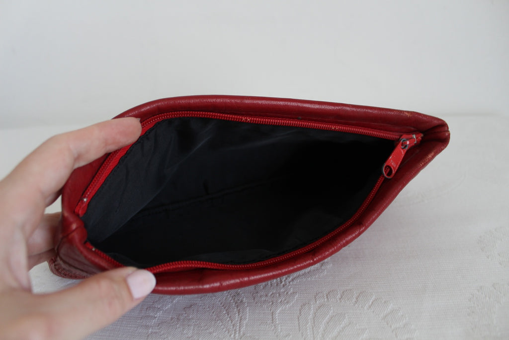 Stylish authentic vintage red genuine leather and snake skin clutch bag.