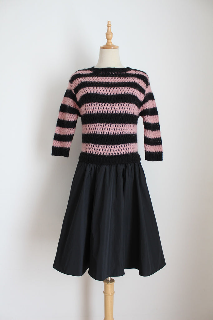 RED VALENTINO STRIPE WOOL JERSEY DRESS - SIZE 10