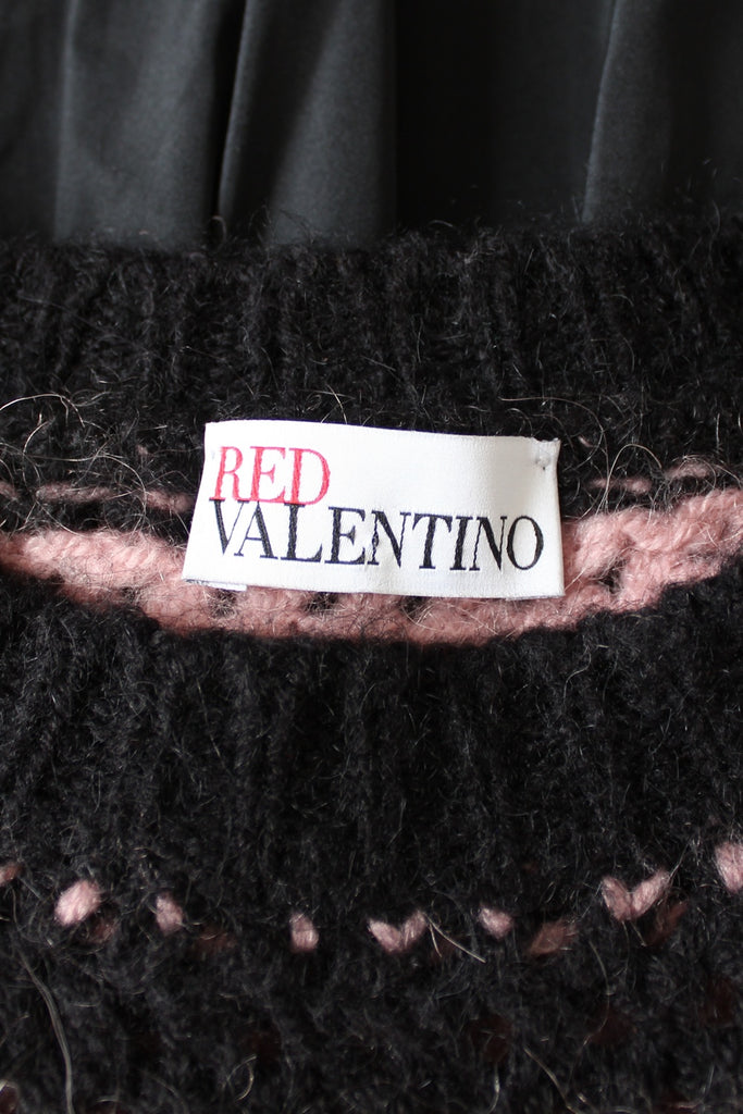 Exquisite authentic Red Valentino luxury designer jersey knit dress with drop waist. Bodice is lined with a built-in tank top. Elasticated at hip.