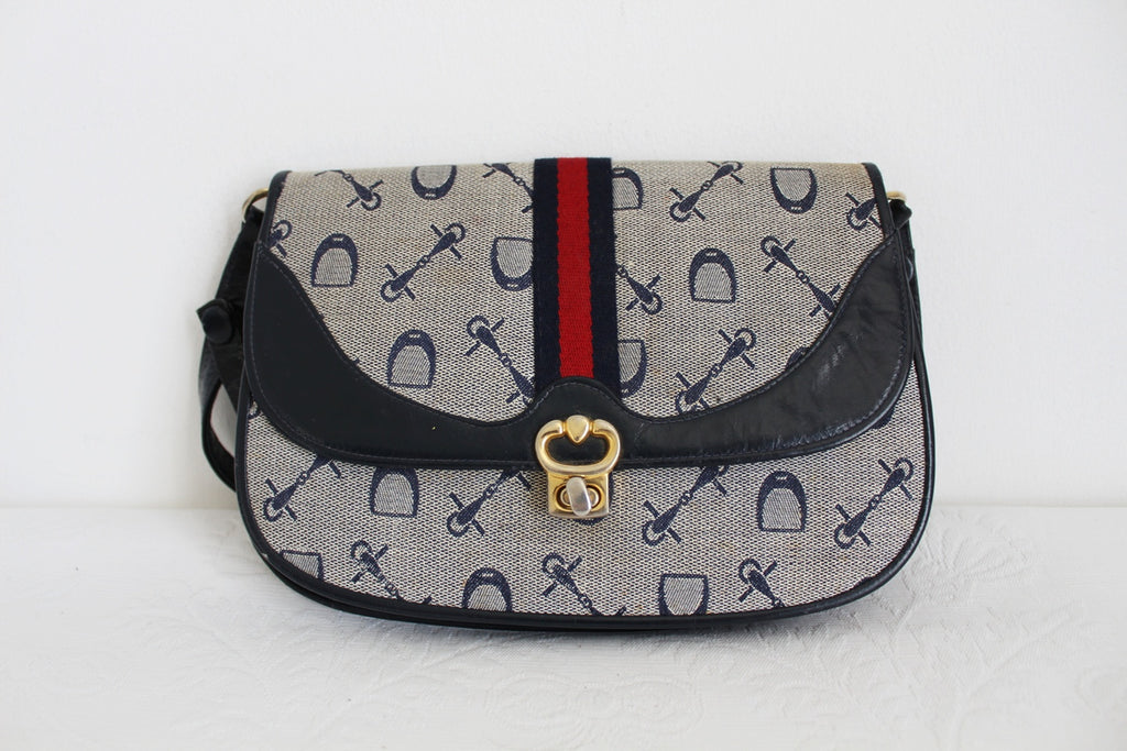 Designer inspired authentic vintage canvas and genuine leather shoulder bag.