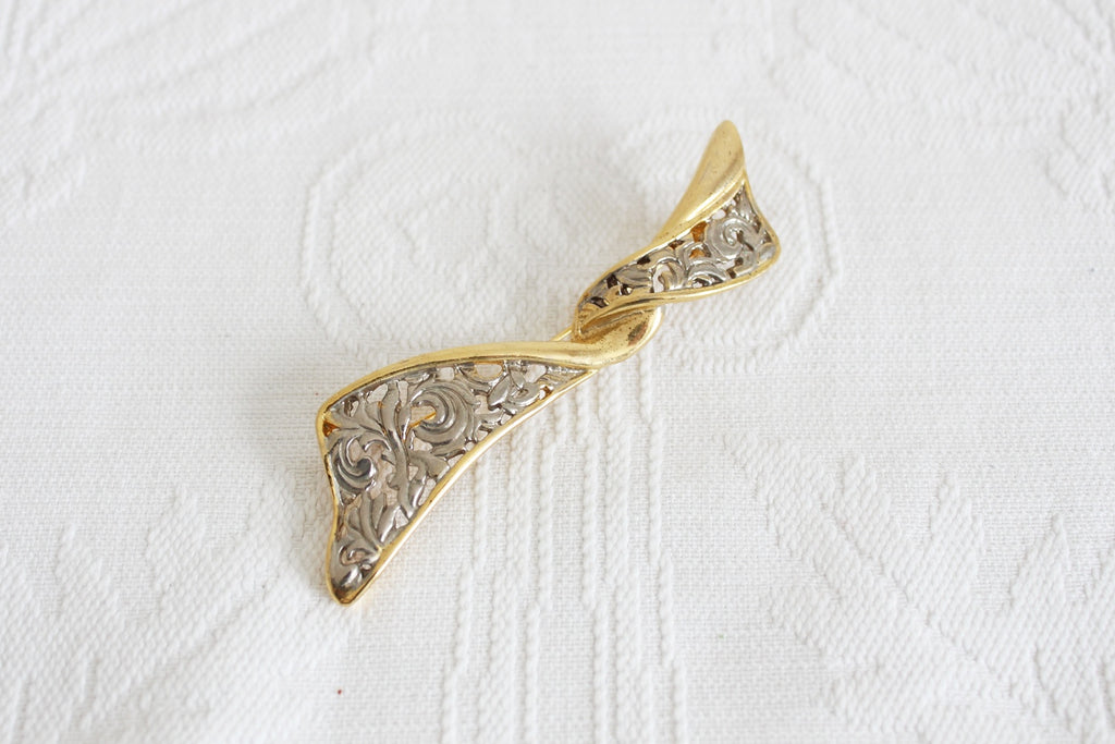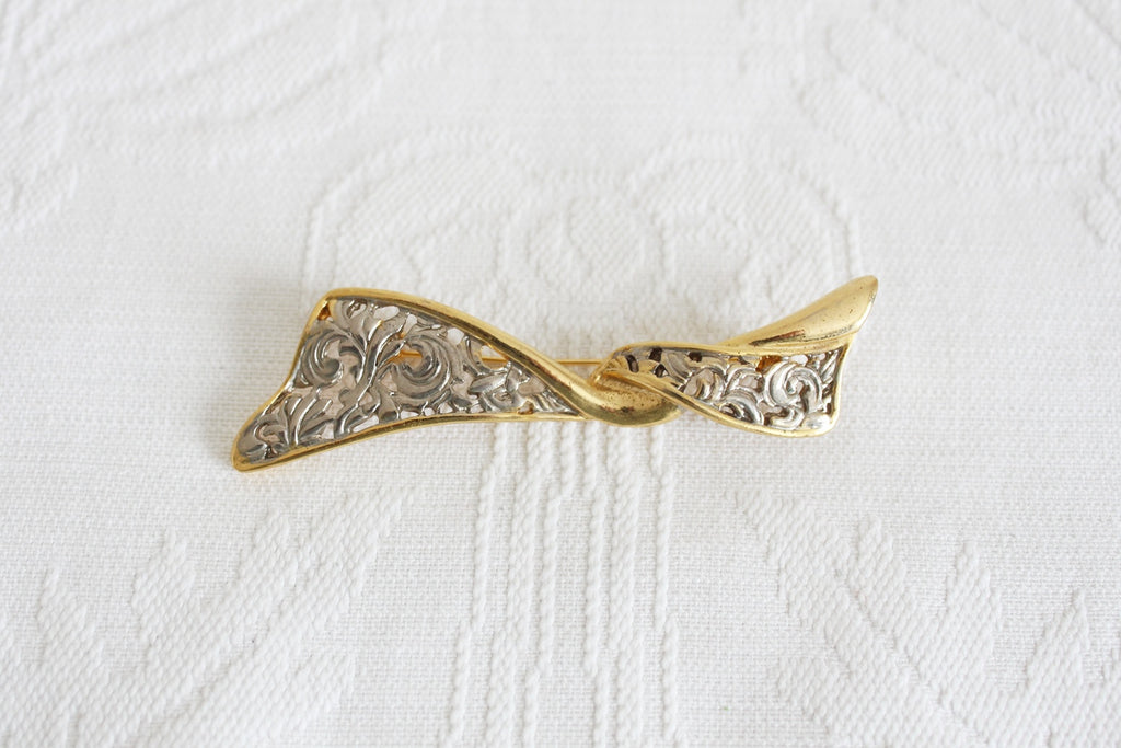 Authentic vintage two tone gold/ silver tone twisted brooch pin.