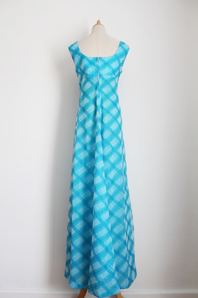VINTAGE PLAID CHECK EMPIRE MAXI DRESS BLUE - SIZE 10