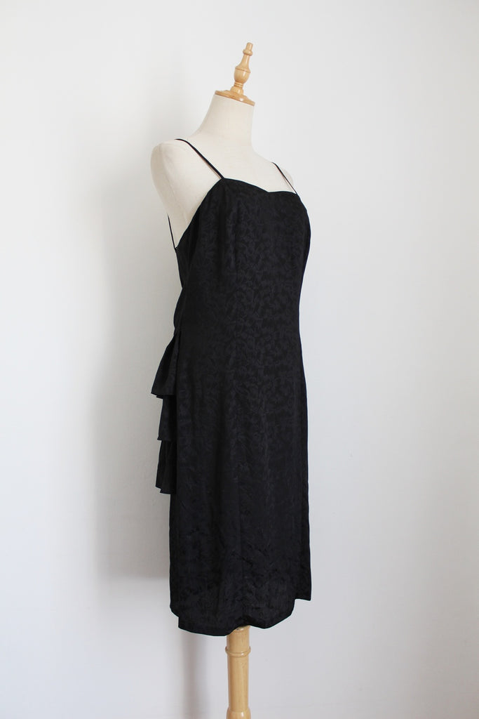 VINTAGE RUFFLE STRAPPY DRESS BLACK - SIZE 8