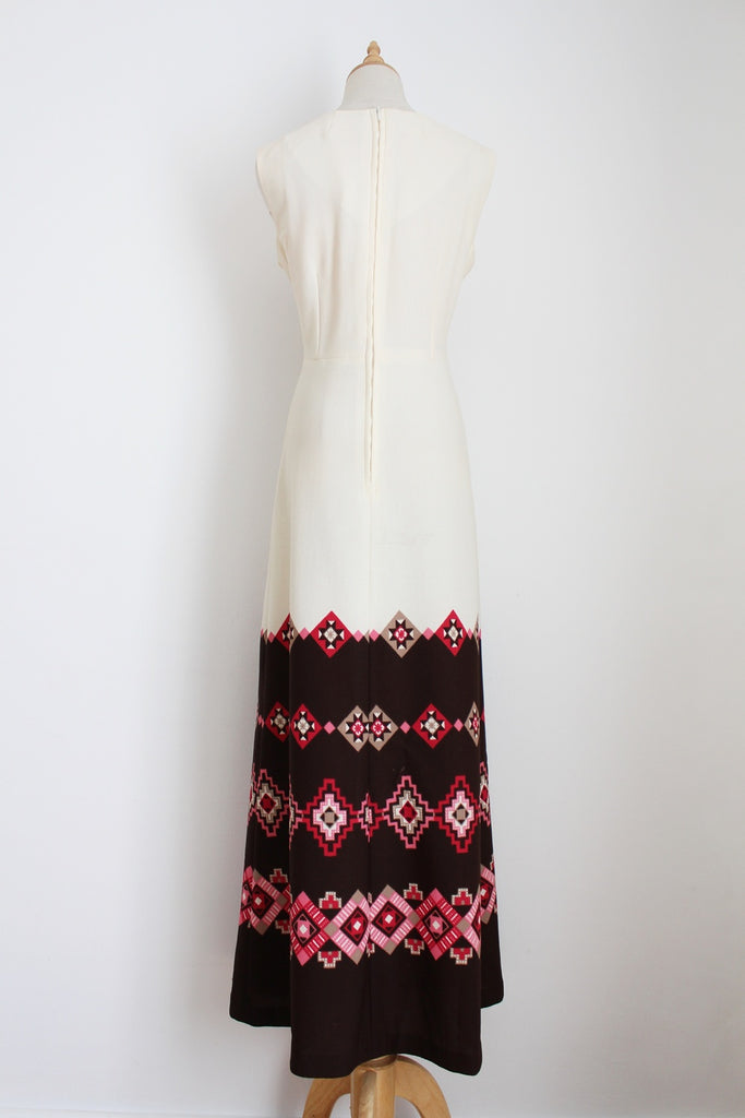 VINTAGE SLEEVELESS MAXI DRESS CREAM BROWN - SIZE 8