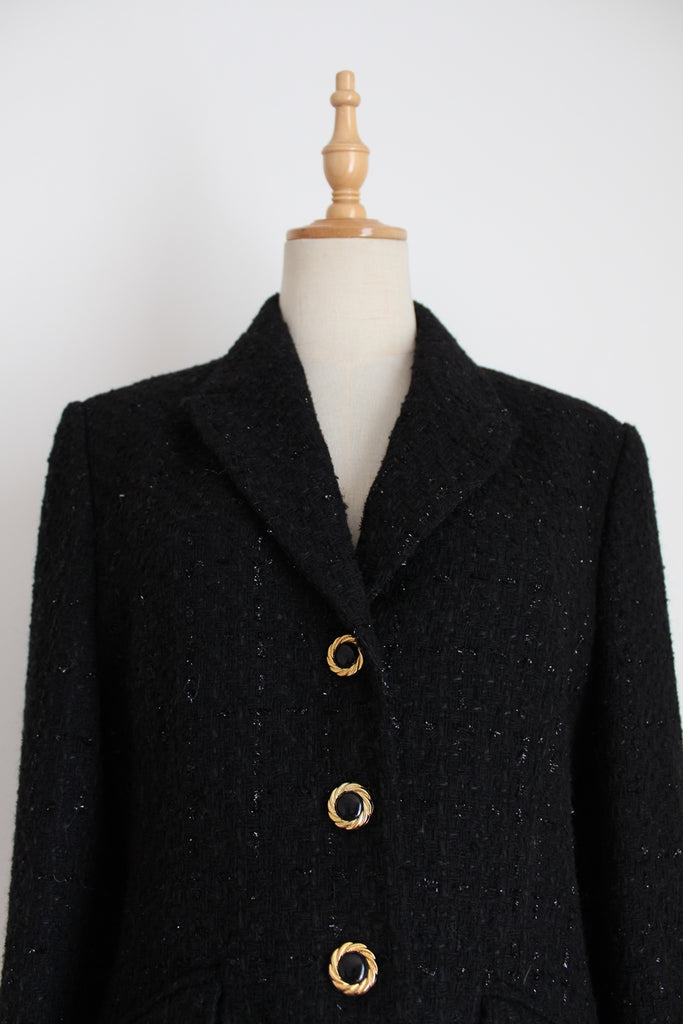 Stunning authentic vintage black shimmer boucle wool blazer. Fully lined.