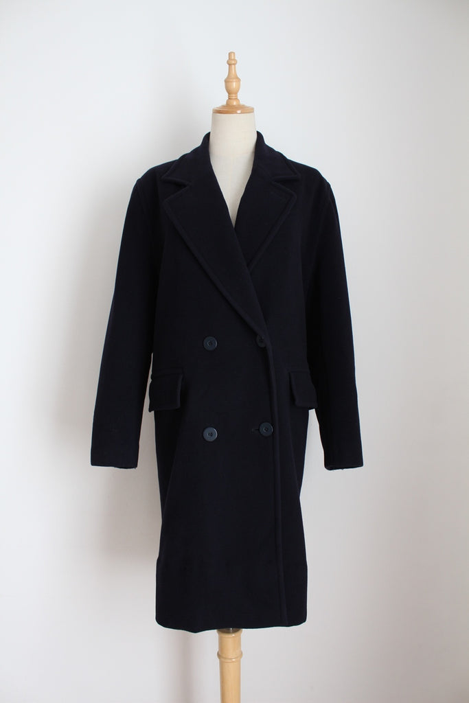 Authentic vintage Weinberg Paris designer wool cashmere blend coat in navy. Fully lined.